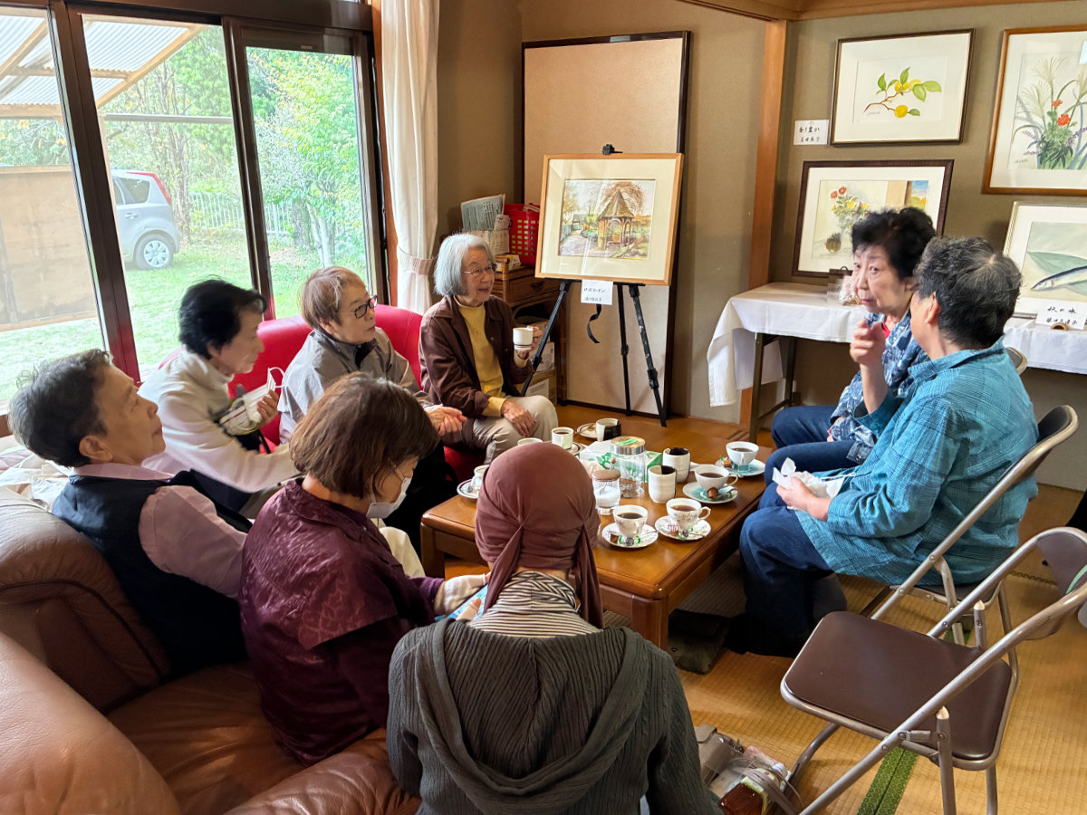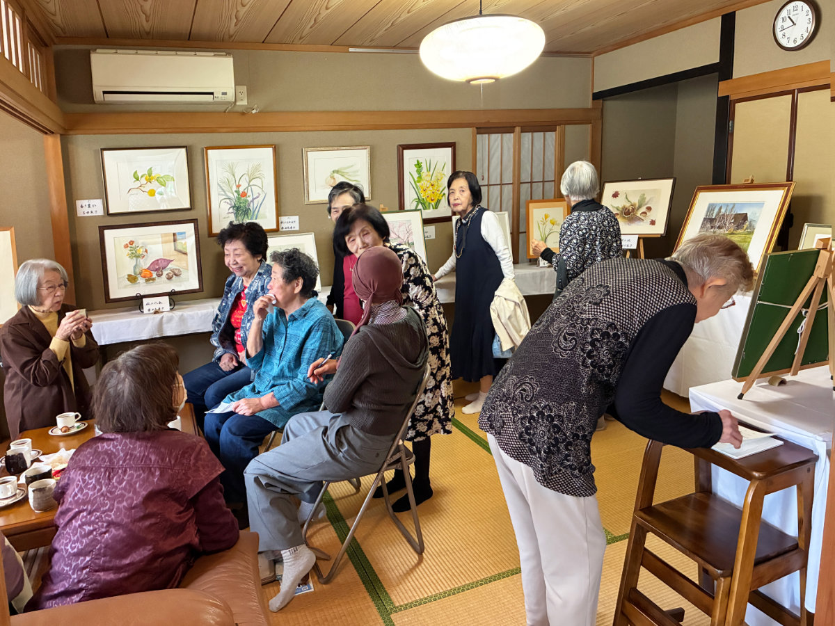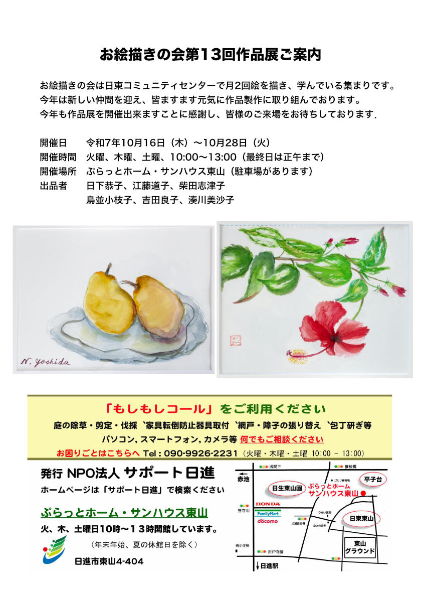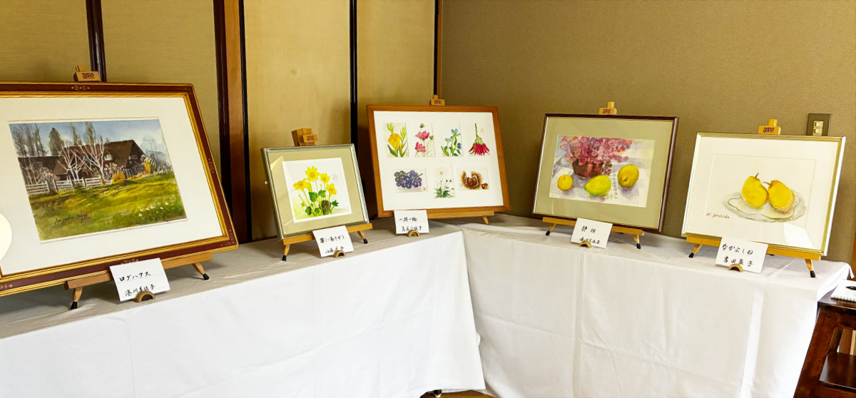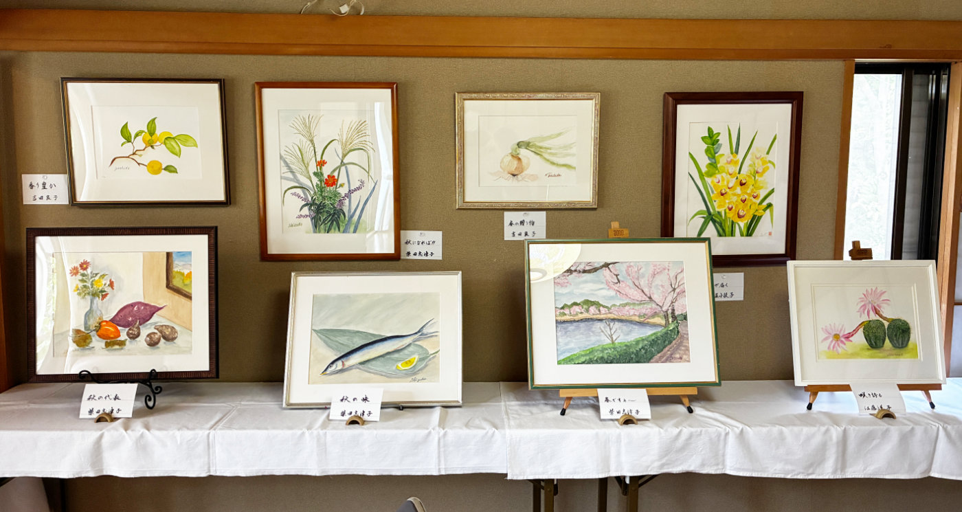 団地内の高齢者のグループの作品ですが絵を話のネタに楽しいひと時をお過ごしいただきますようご来場をお待ちしております。